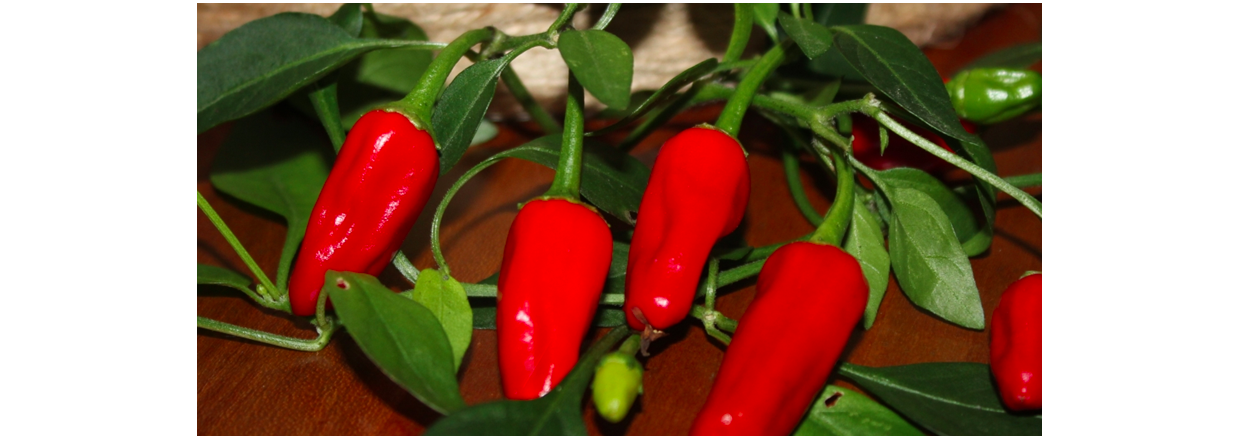 Lille stærk Cayenne chili. Dyrkes på friland og i drivhus, giver først grønne siden røde chilier.