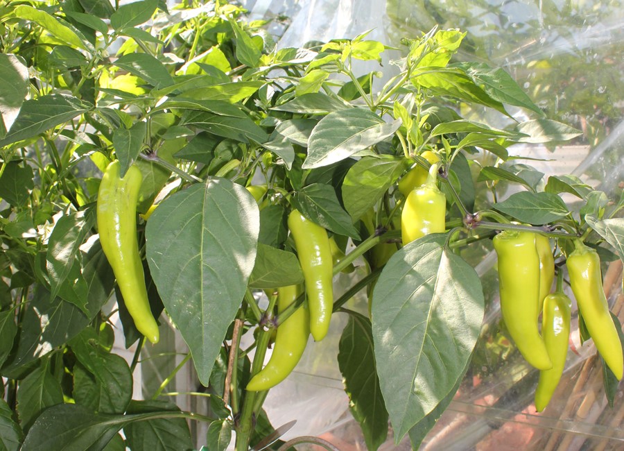 Dyrkes på friland og i drivhus, giver først grønne siden røde chilier.